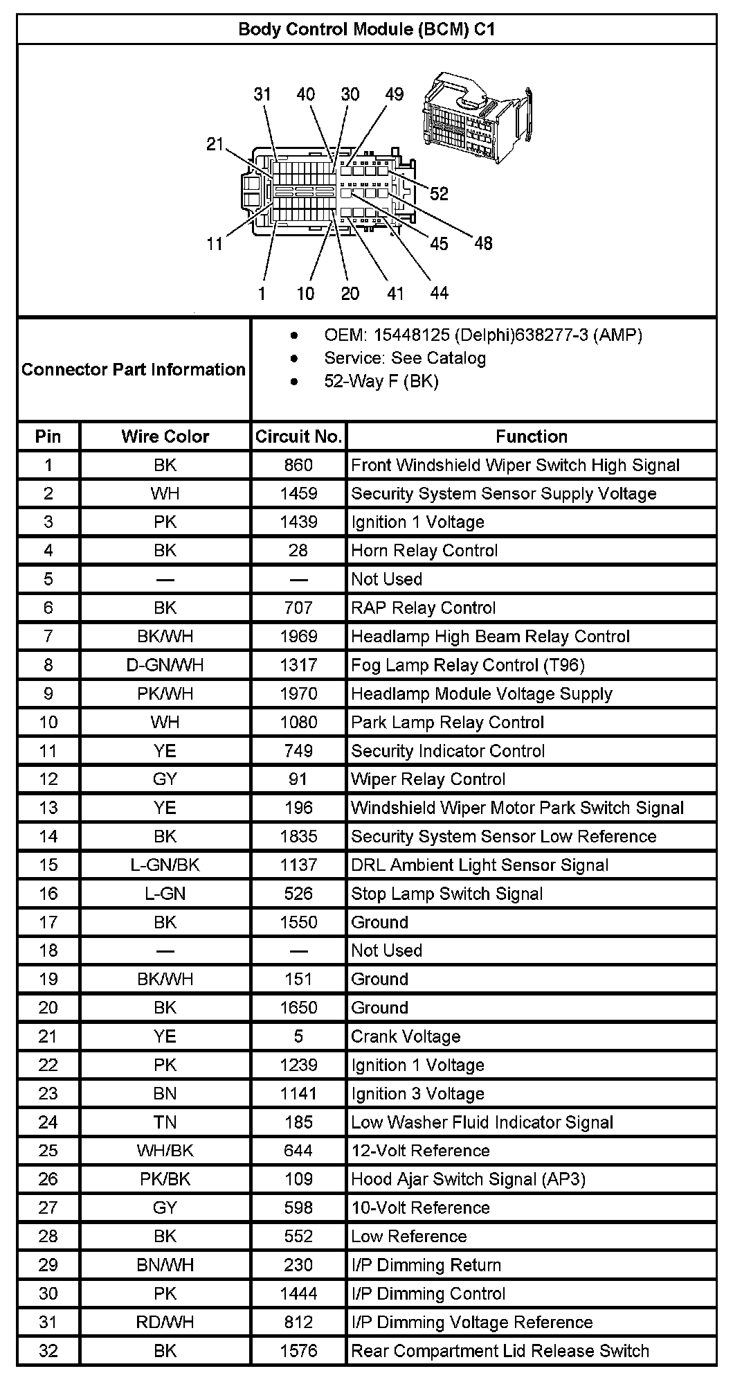 Body Control Module (BCM) C1 (Part 1):