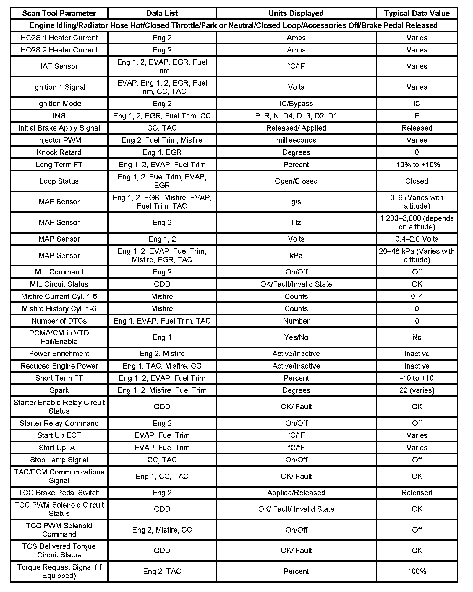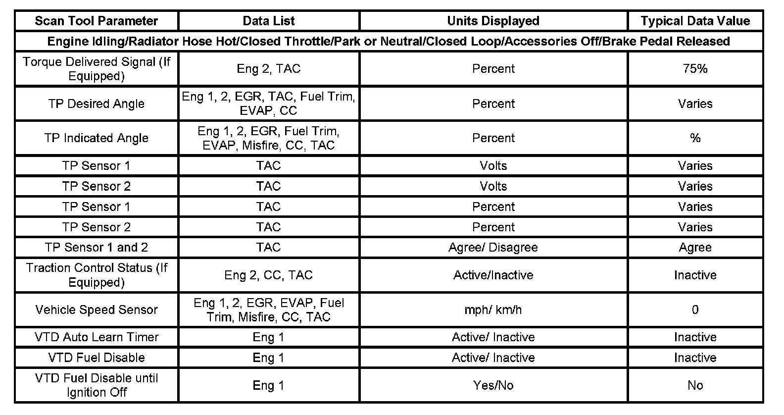 Only the parameters listed below are referenced in this service data for use in diagnosis. If all values are within the typical range described below, refer to Symptoms - Computers and Control Systems for diagnosis. - Symptoms - Engine Controls