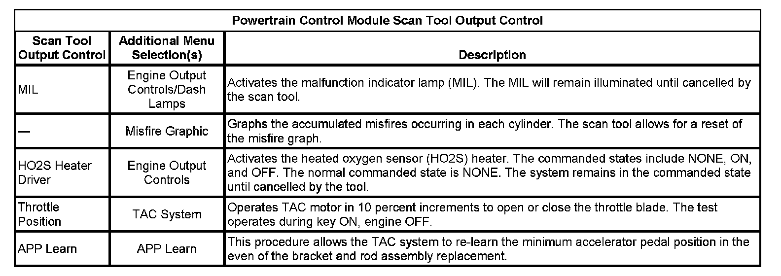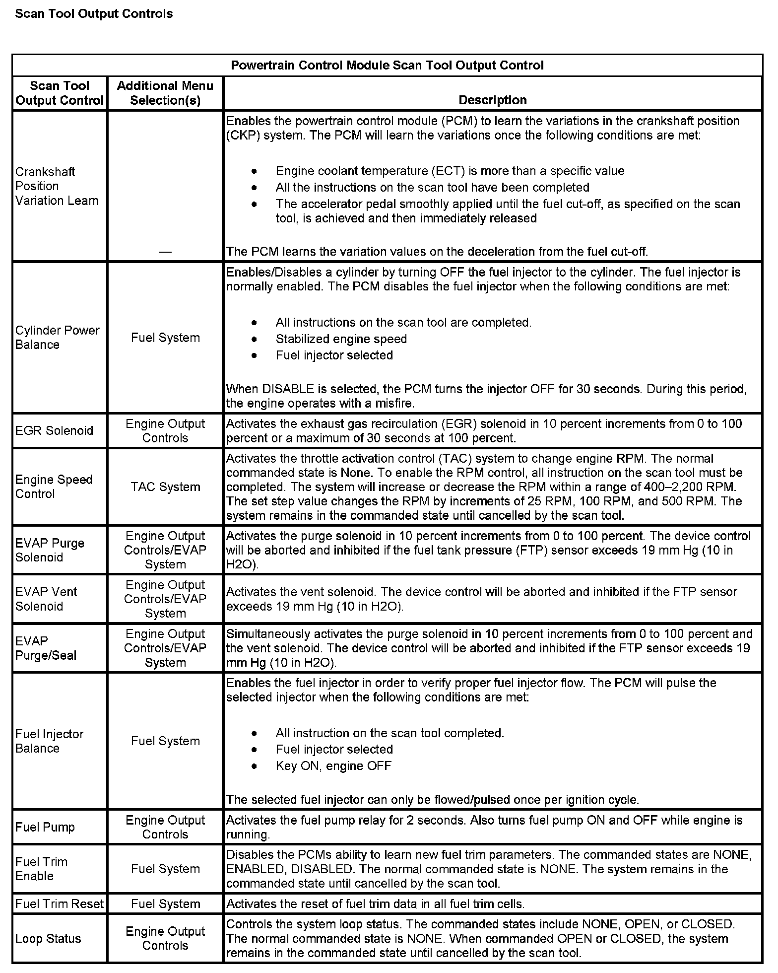 Scan Tool Output Controls