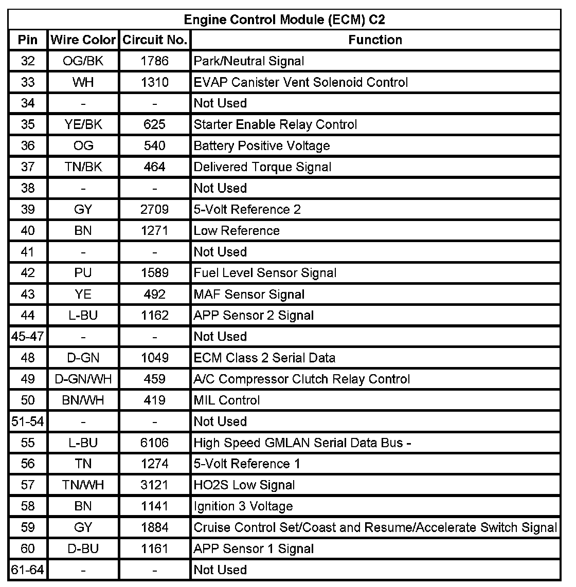 Engine Control Module (ECM) C2 (Pin 32 To 64):