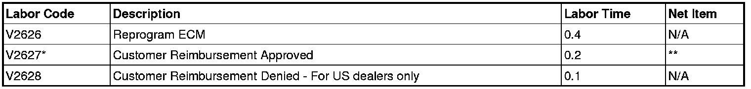 All reasonable and customary costs to correct the condition described in this bulletin should be considered for reimbursement. Any questions or concerns should be reviewed with your District Service Manager - Aftersales prior to processing the request.