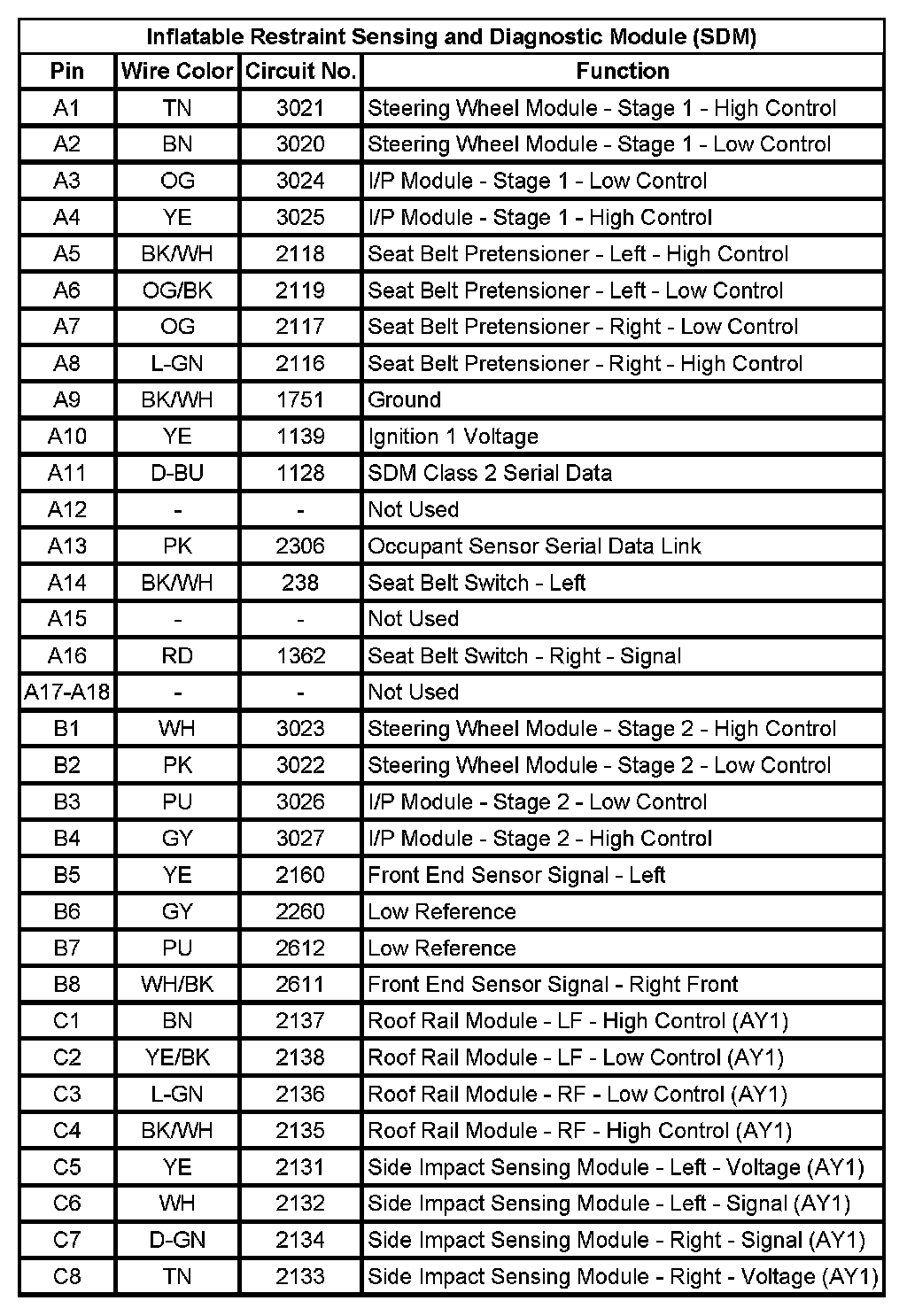 Inflatable Restraint Sensing and Diagnostic Module (SDM)