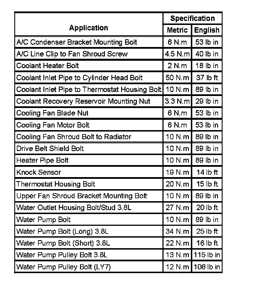 Fastener Tightening Specifications: