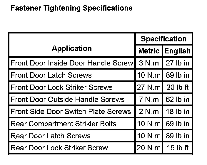Fastener Tightening Specifications: