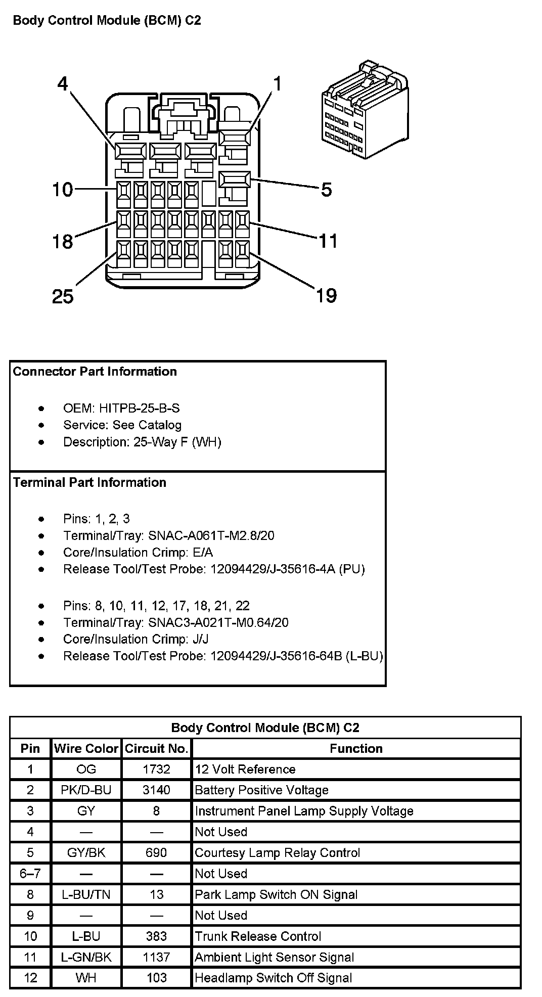 Body Control Module (BCM) C2 (Pin 1 - Pin 12):