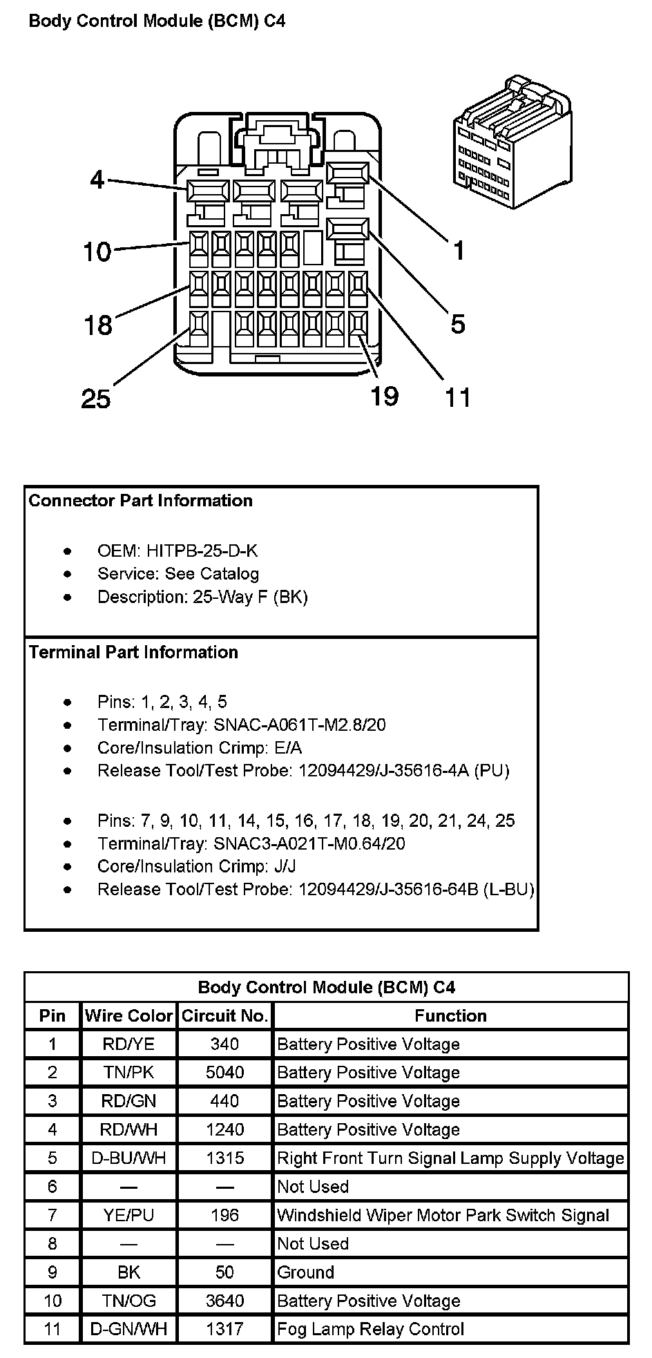 Body Control Module (BCM) C4 (Pin 12 To 25):