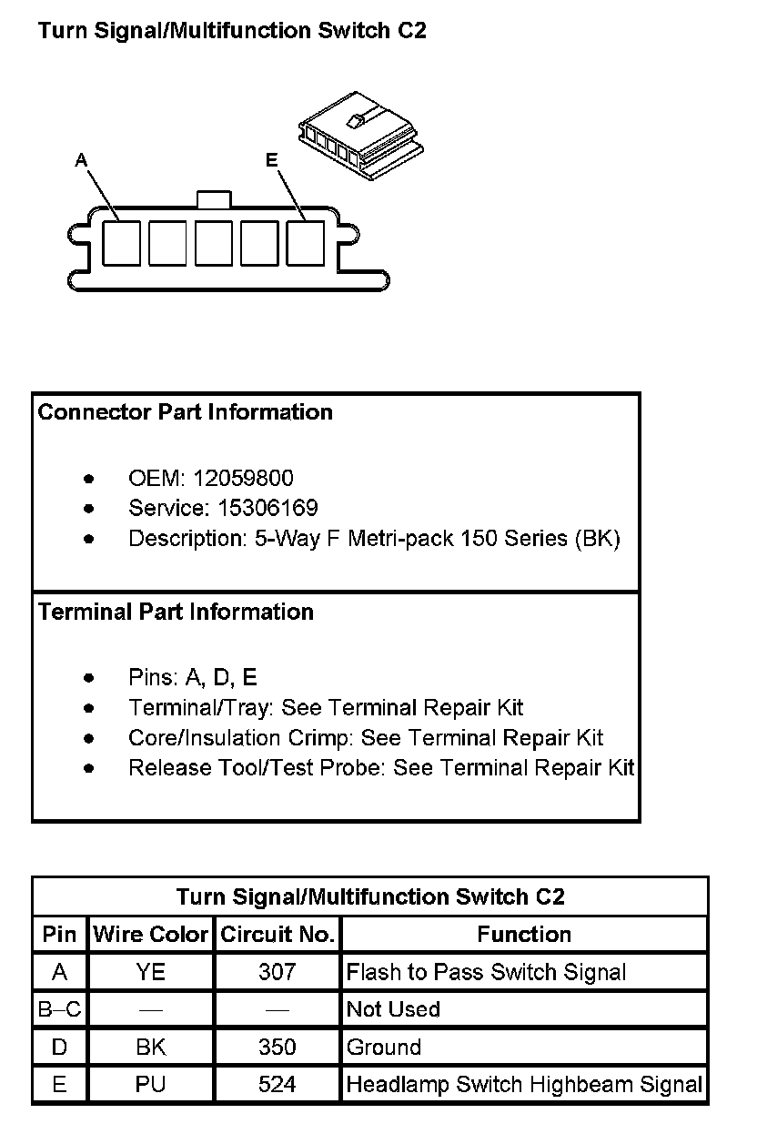 Turn Signal/Multifunction Switch C2: