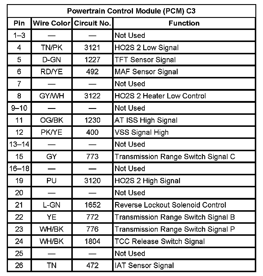 Powertrain Control Module (PCM) C1 (Pin 1 To 25):