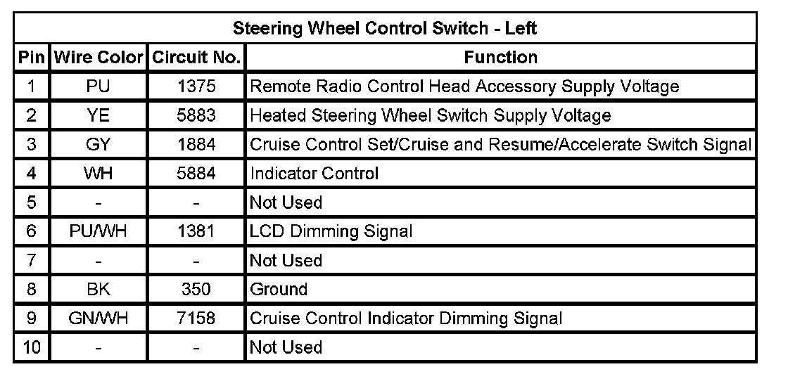 Steering Wheel Control Switch - Left