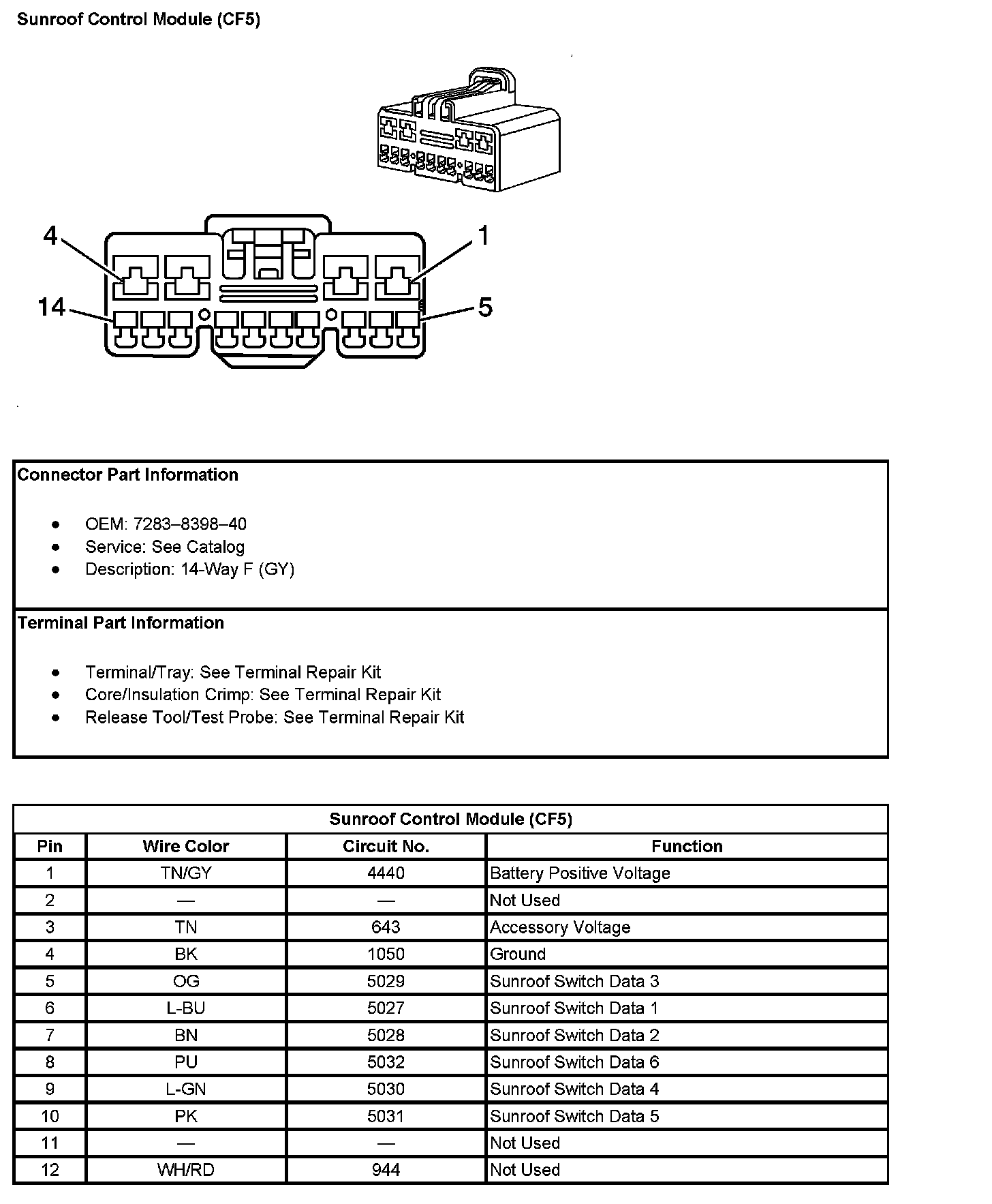 Sunroof Control Module (With RPO Code CF5) Pin 1 To 12: