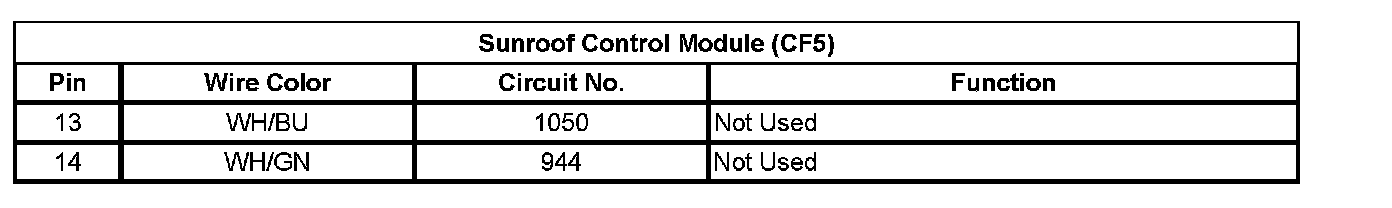 Sunroof Control Module (With RPO Code CF5) Pin 13 To 14: