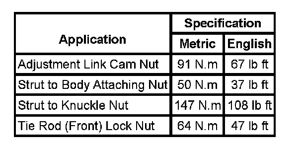 Fastener Tightening Specifications: