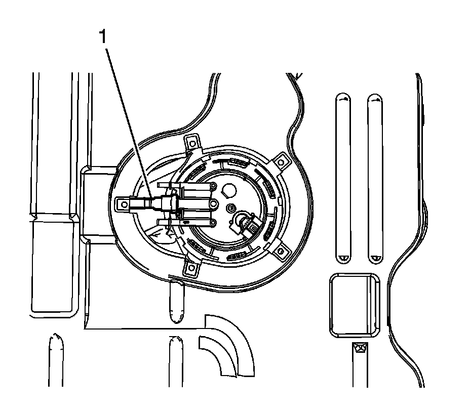 11. Raise the sender slightly from the fuel tank and disconnect the vent line quick connect fitting (1) from the sender. Refer to Plastic Collar Quick Connect Fitting Service.