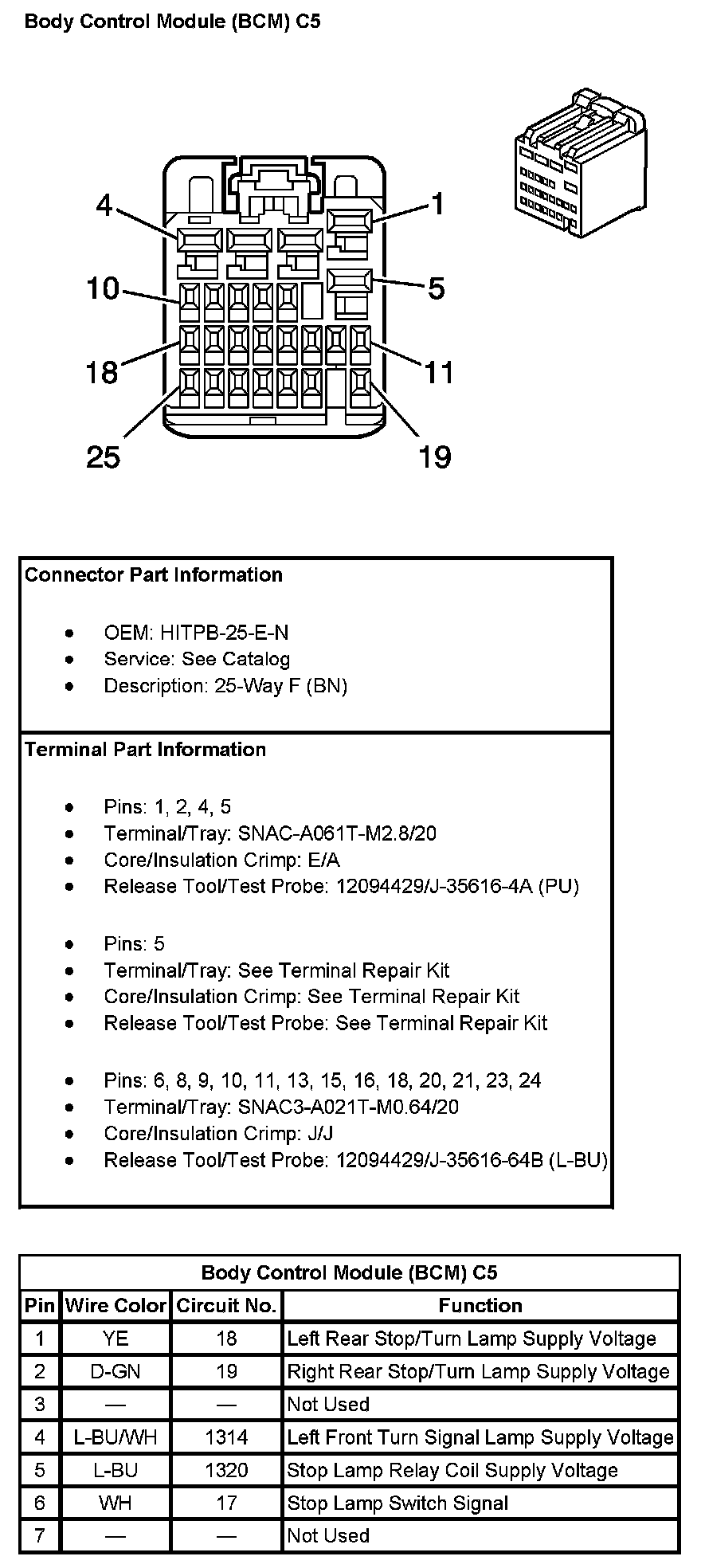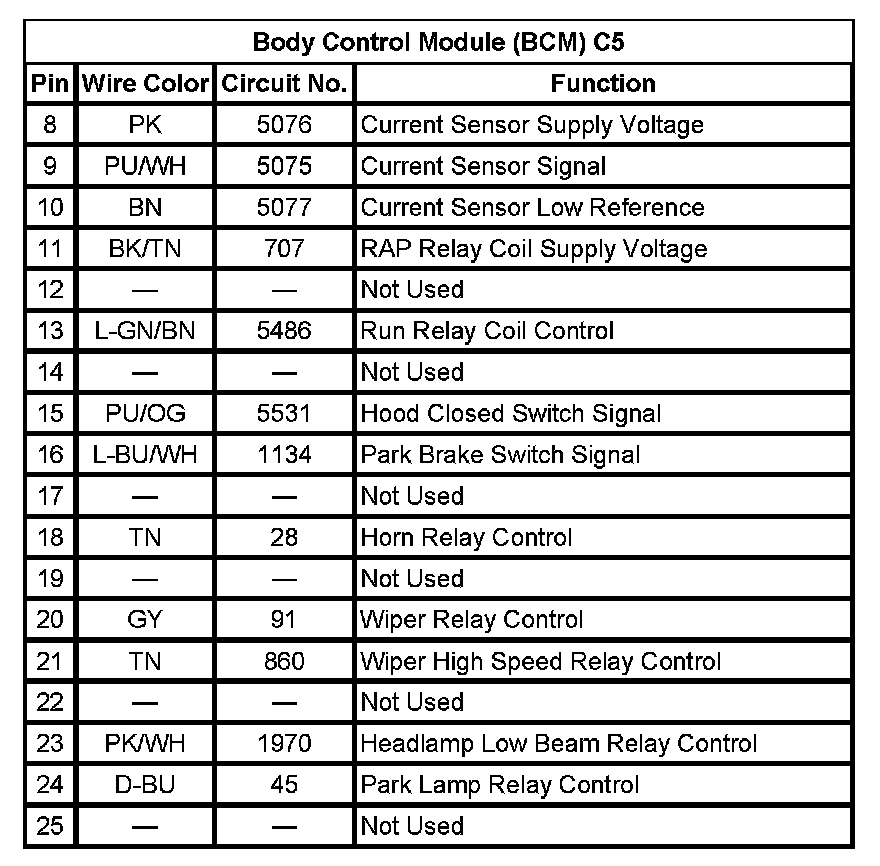 Body Control Module (BCM) C5 (Pin 8 To 25):