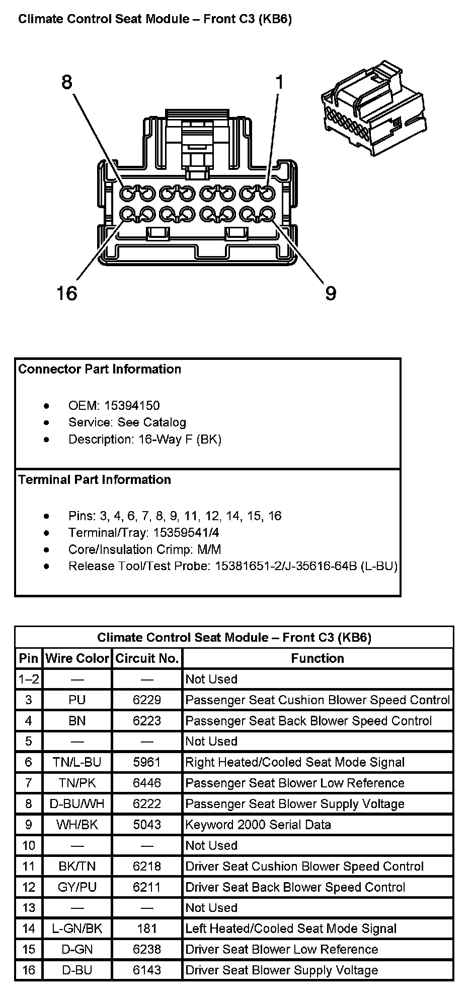Climate Control Seat Module - Front C3 (With RPO Code KB6):