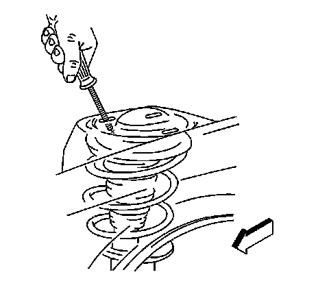 8. Move the top of the strut forward or rearward in order to adjust the caster. A 1 mm (0.040 in) position change at the tower is about equal to a 0.1 degree change in the caster. Refer to Wheel Alignment Specifications.