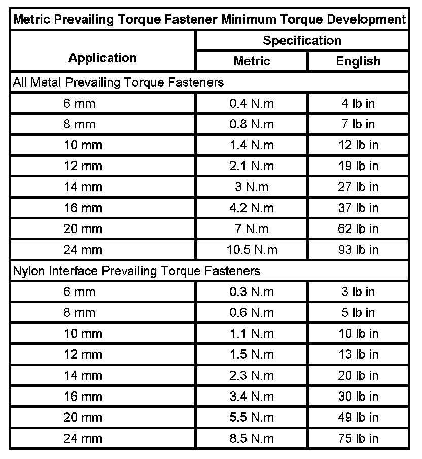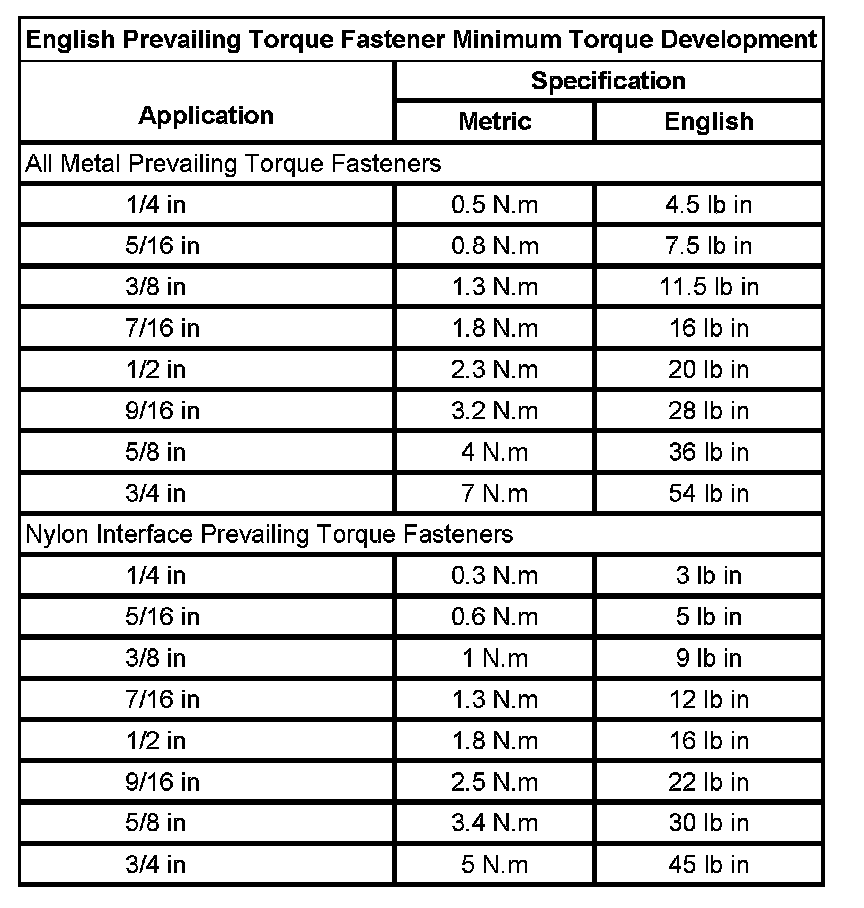 * The fastener develops the specified minimum torque against its counterpart prior to the fastener seating