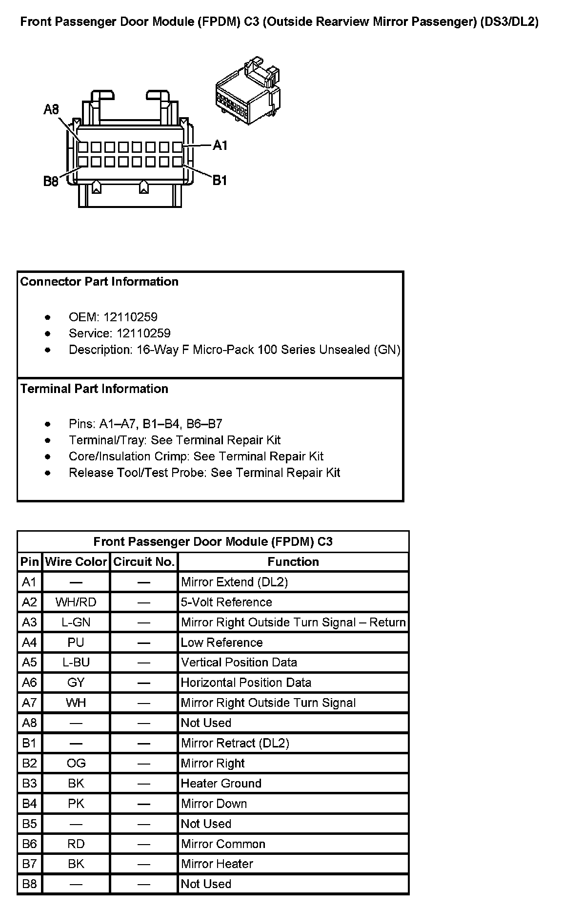 Front Passenger Door Module (FPDM) C3 (Outside Rearview Mirror Passenger) (DS3/DL2):