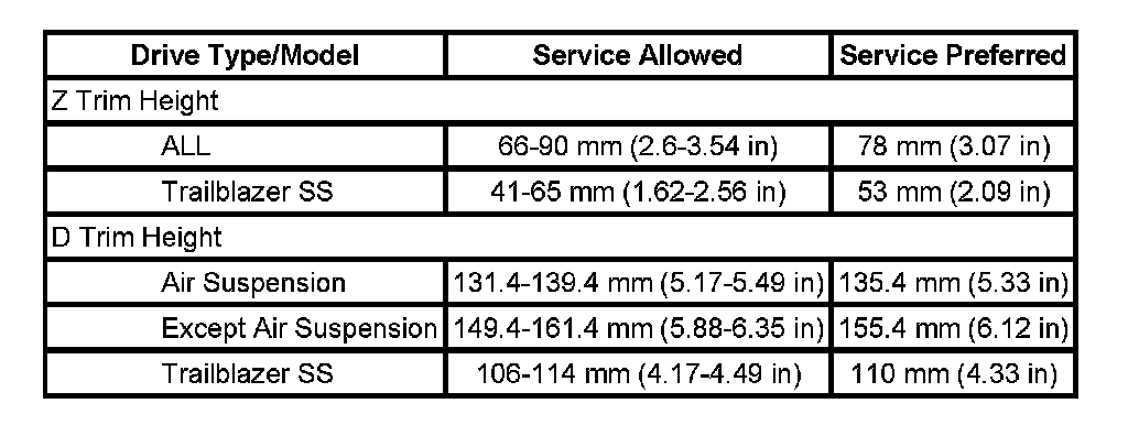 Trim Height Specifications: