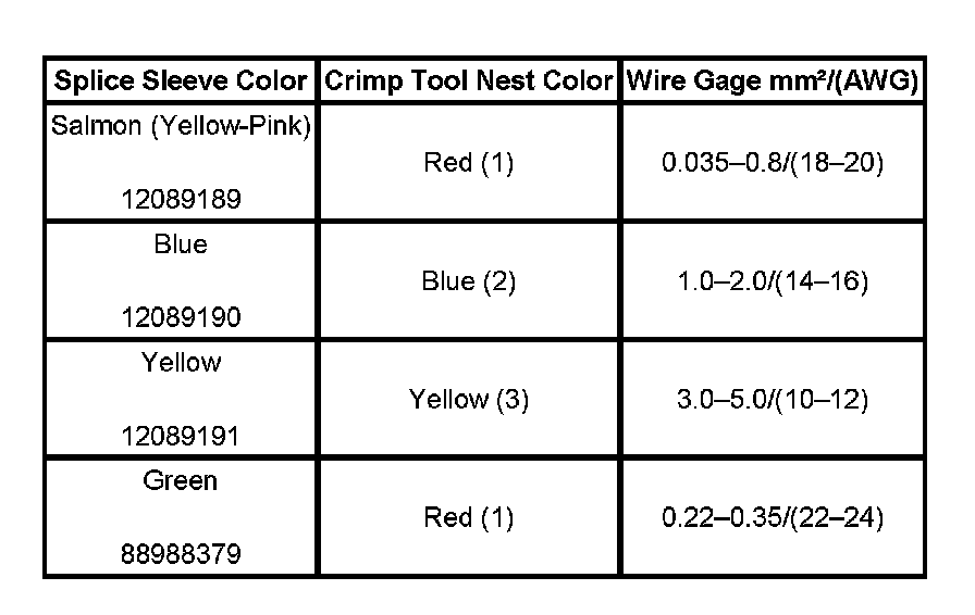 4. Select the proper DuraSeal splice sleeve according to the wire size. Refer to the above table at the beginning of the repair procedure for the color coding of the DuraSeal splice sleeves and the crimp tool nests.
