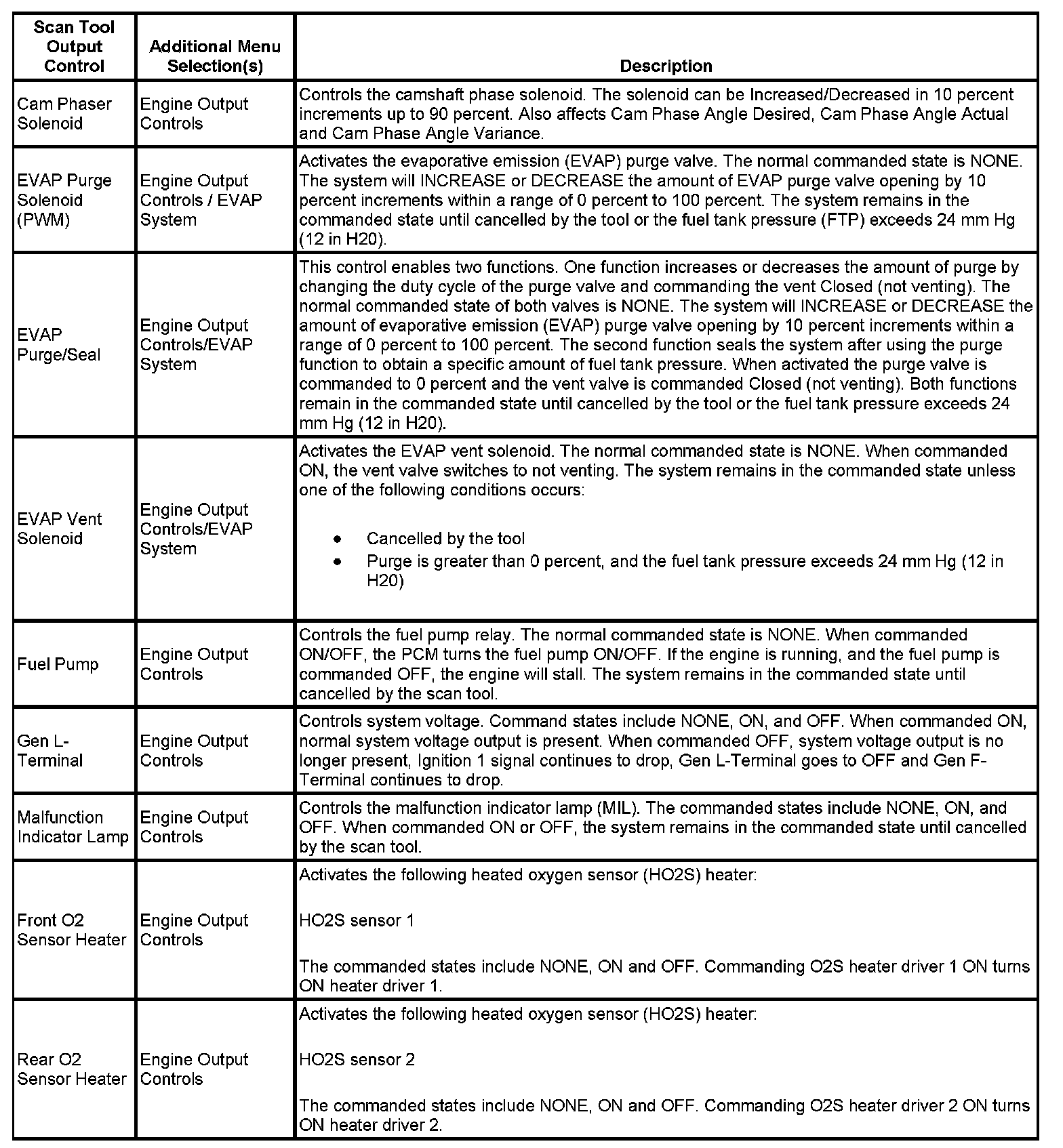 Scan Tool Output Controls