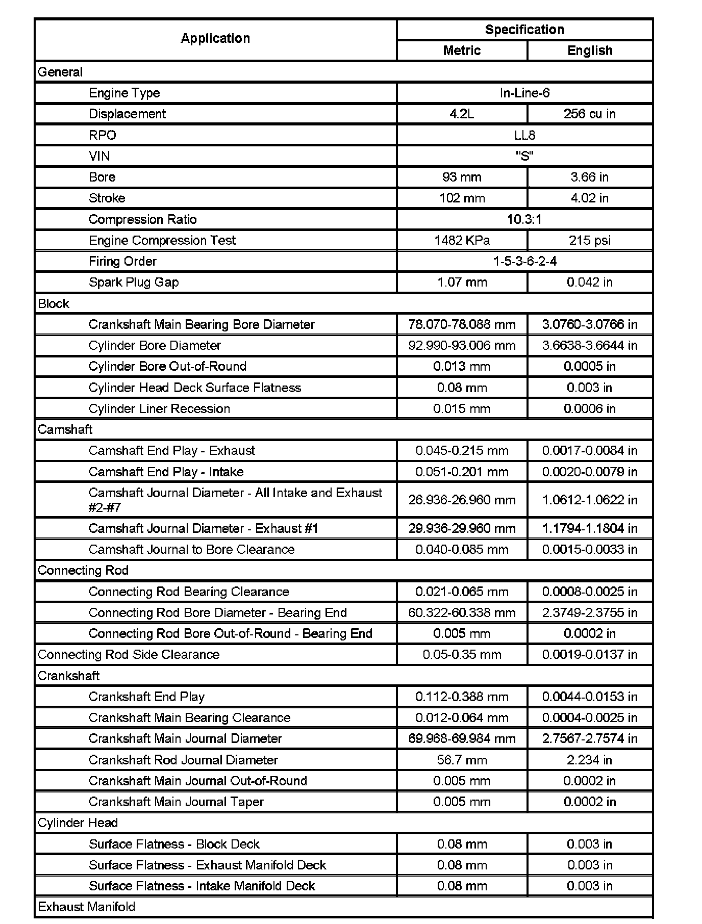 Engine Mechanical Specifications