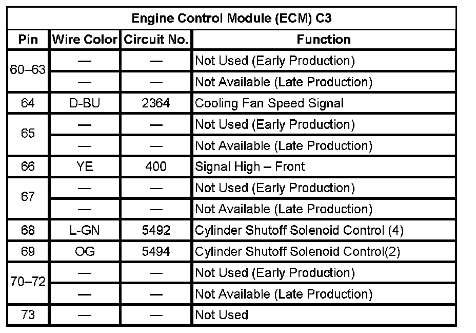 Engine Control Module (ECM) C2 (Pin 55 To 73):