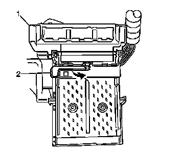 2. Rotate the BCM retaining lever (2) to secure the BCM to the console accessory wiring junction block.