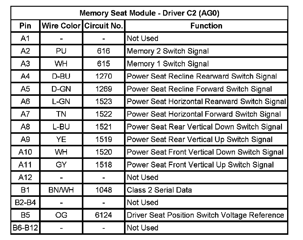 Memory Seat Module - Driver C2 (AG0)