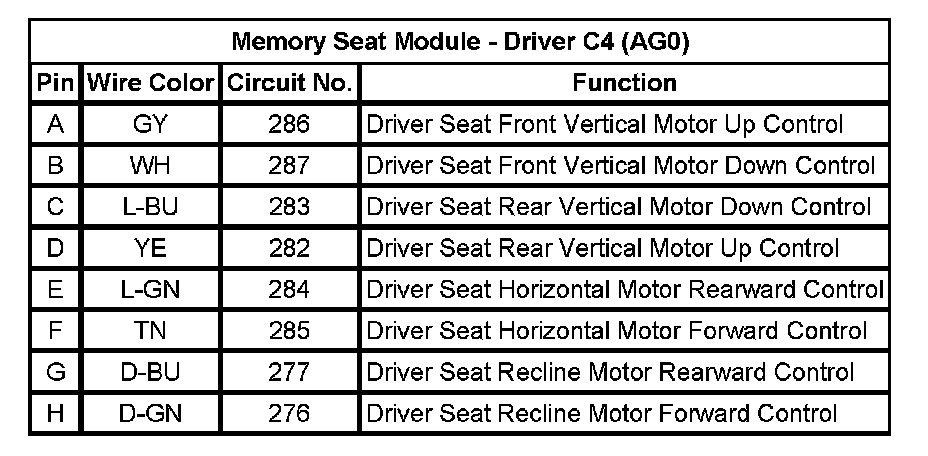 Memory Seat Module - Driver C4 (AG0)