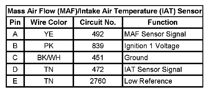 Mass Air Flow (MAF)/Intake Air Temperature (IAT) Sensor