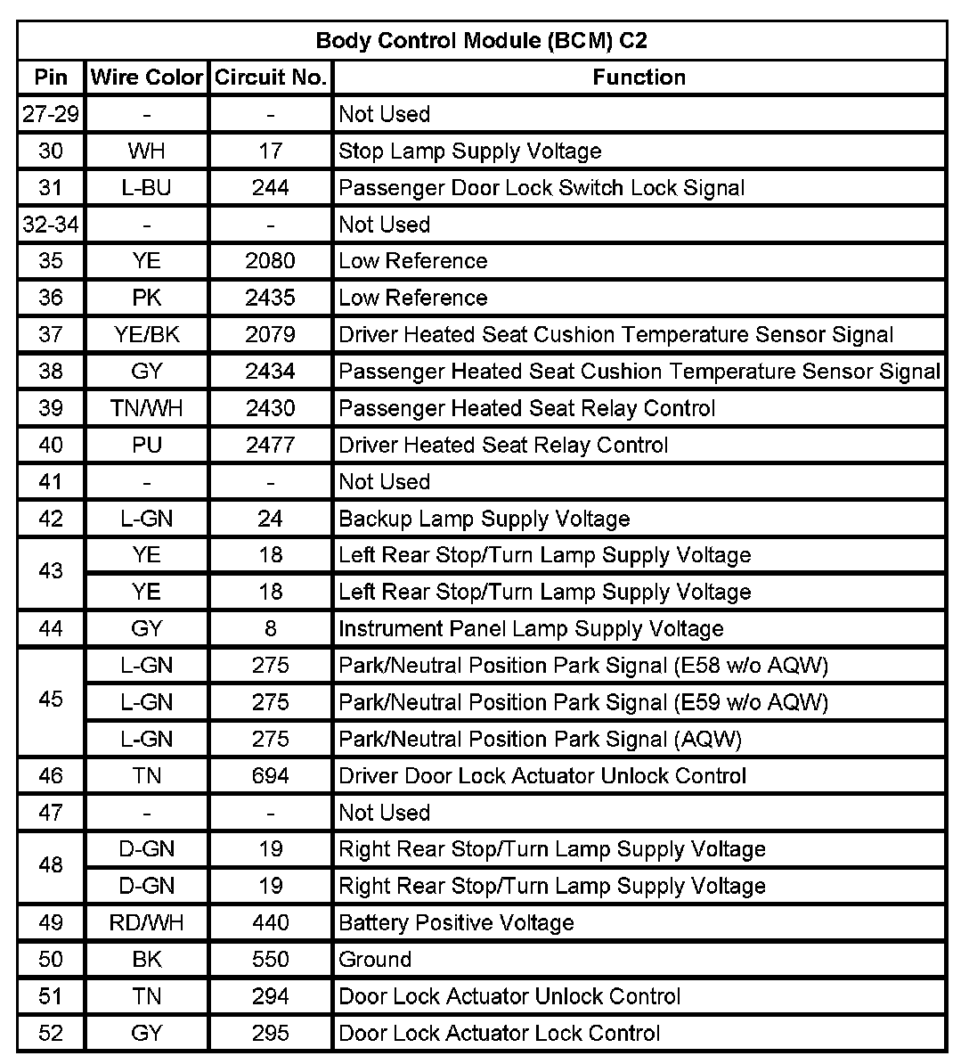 Body Control Module (BCM) C2 (Pin 27 To 52):