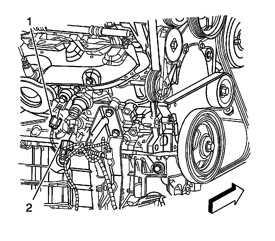 4. Loosen and remove the bank 2 knock sensor (2).