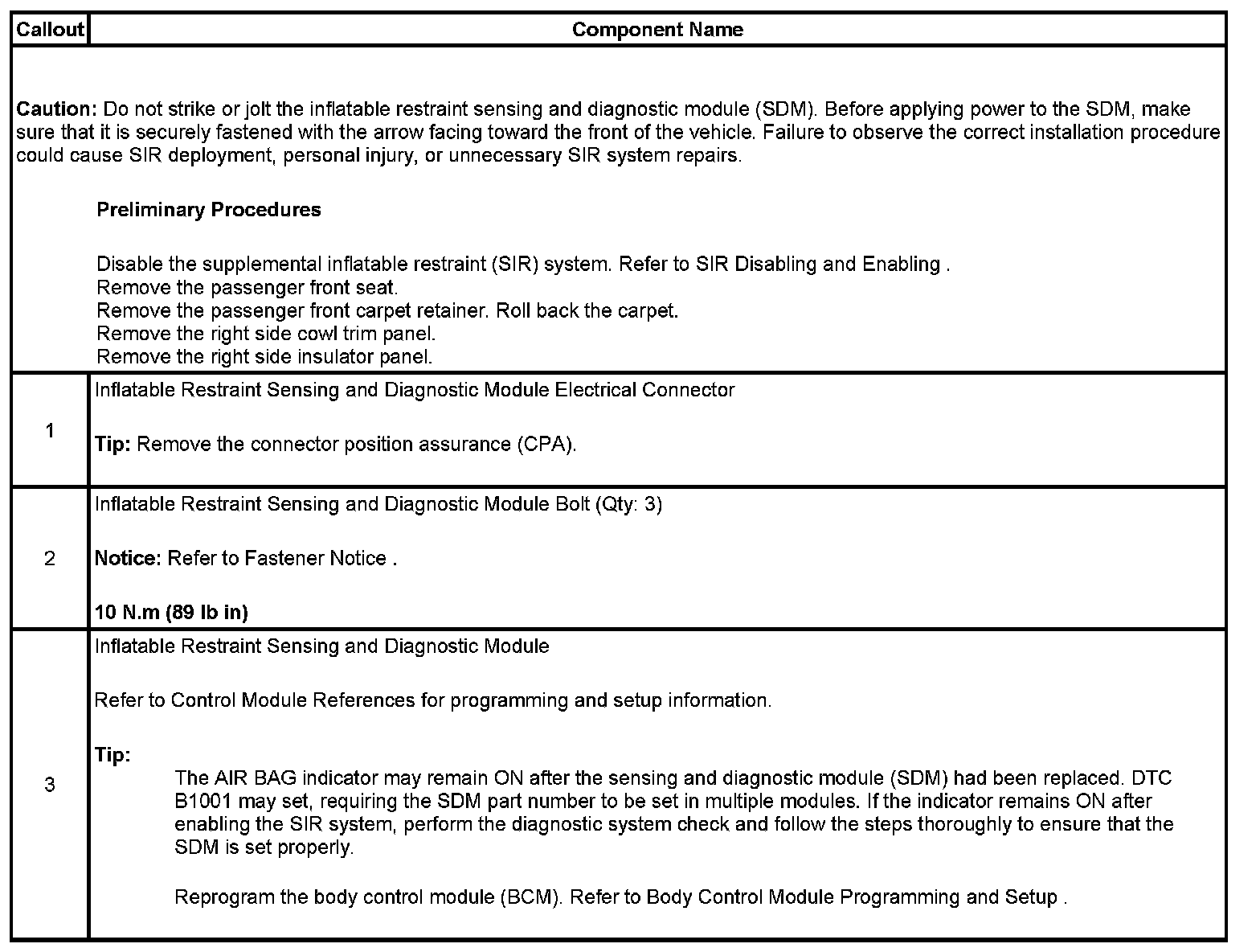Inflatable Restraint Sensing and Diagnostic Module Replacement