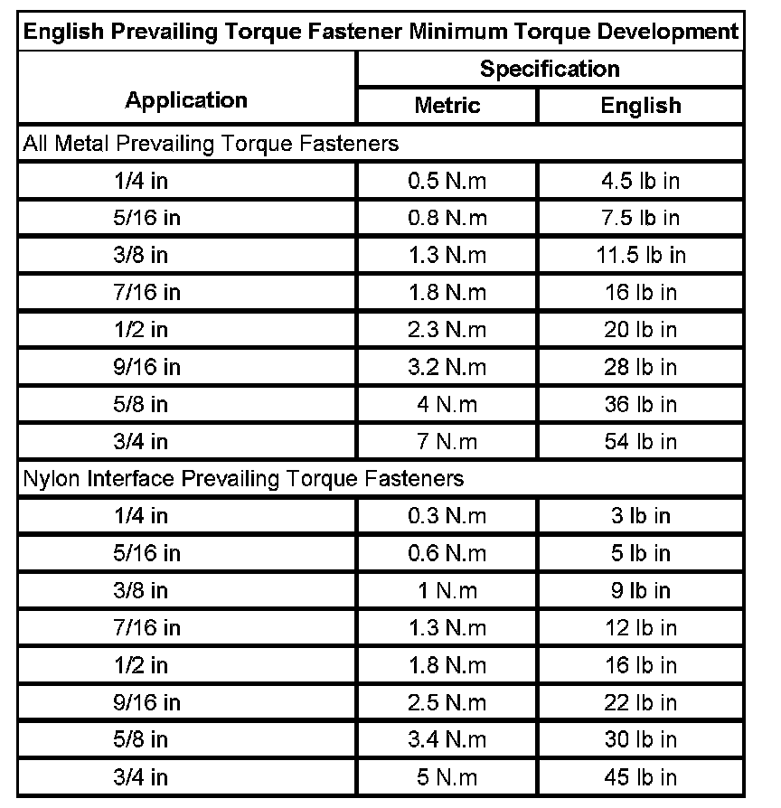Prevailing Torque Fasteners