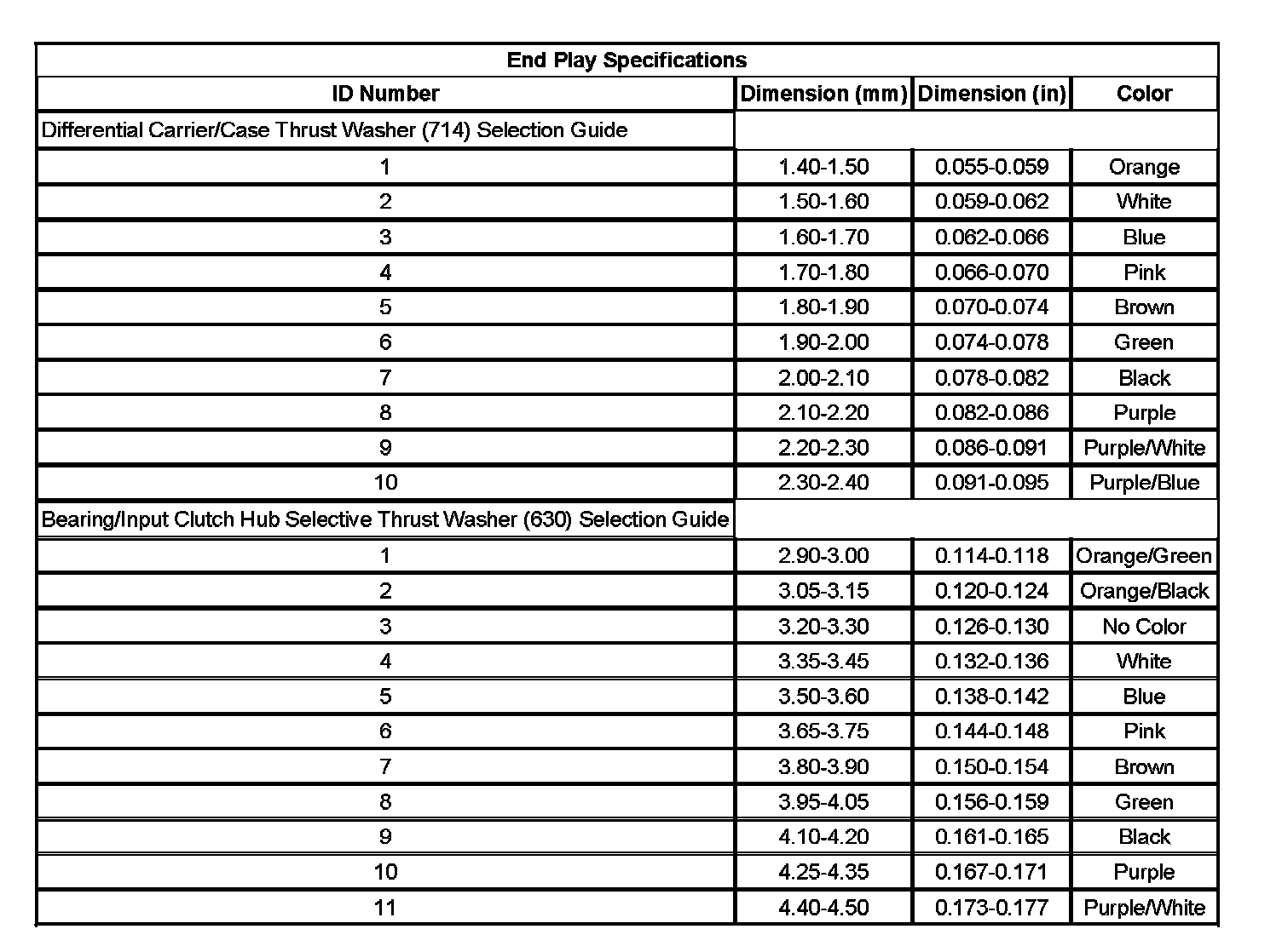 End Play Specifications: