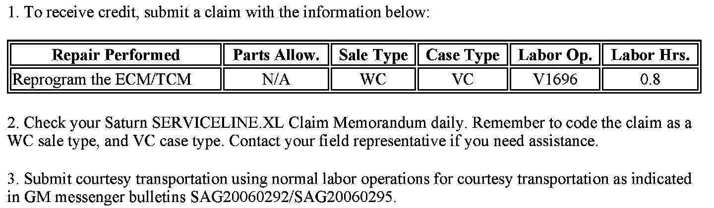 Claim Information - GM, Saturn Canada Only