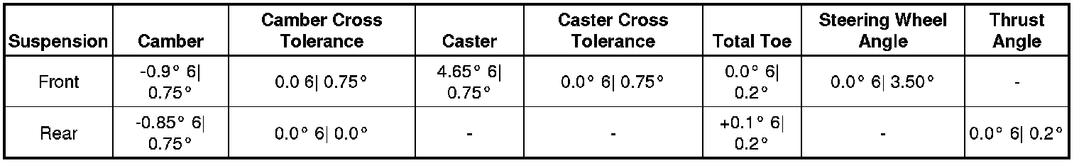 Wheel Alignment Specifications