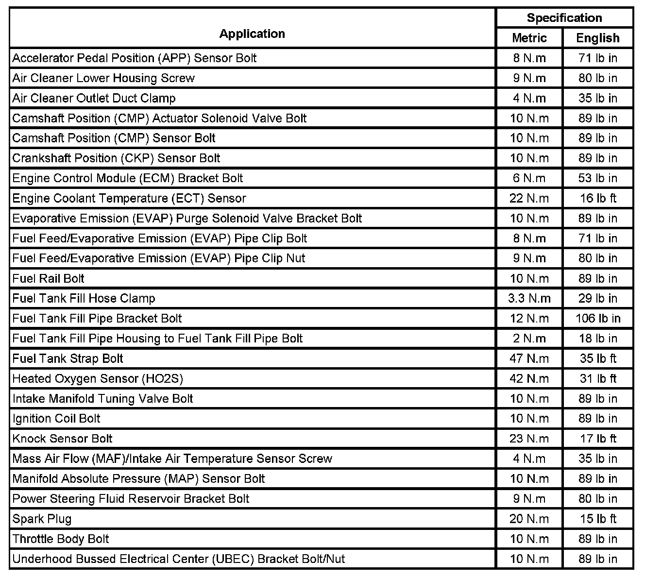 Fastener Tightening Specifications