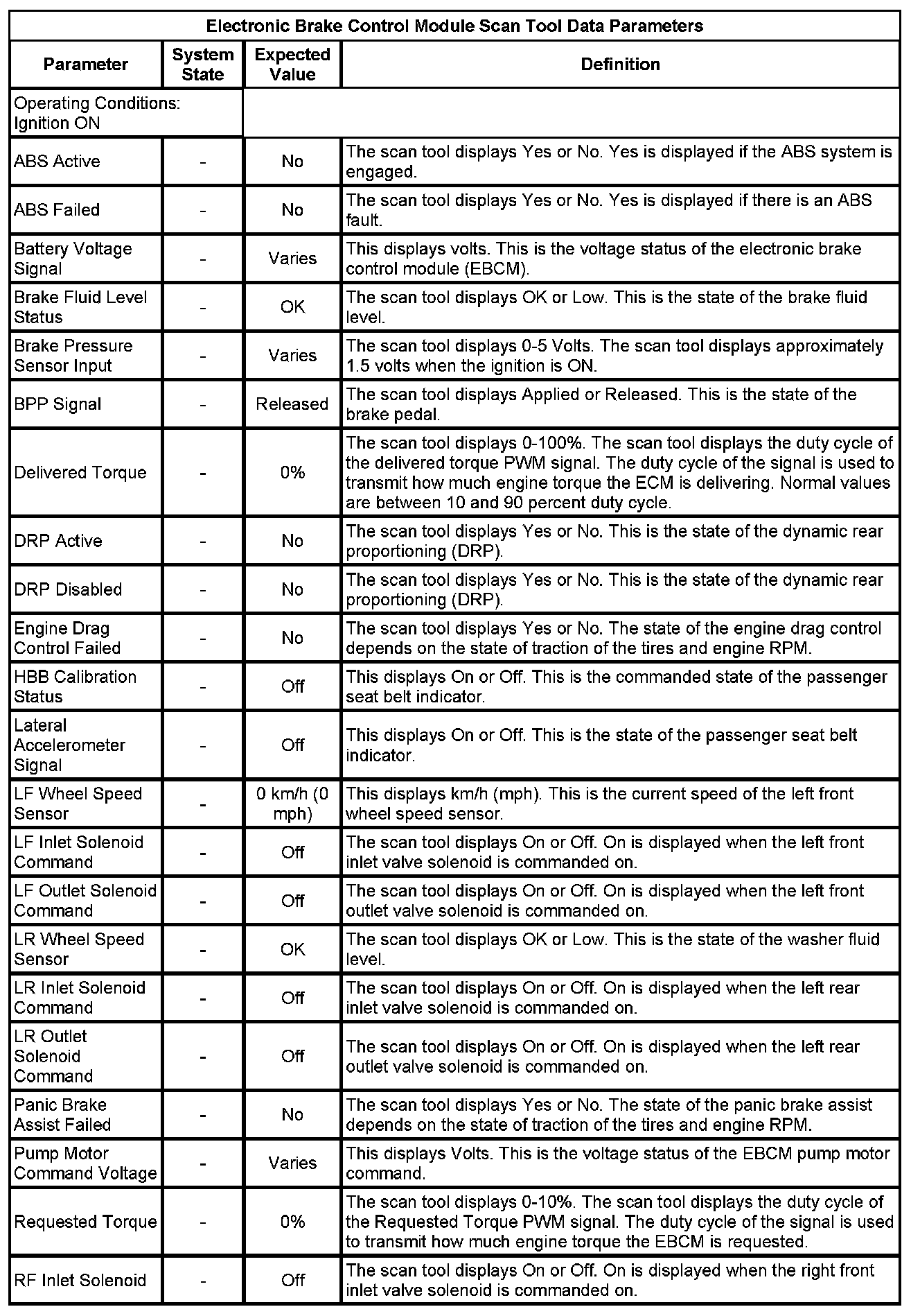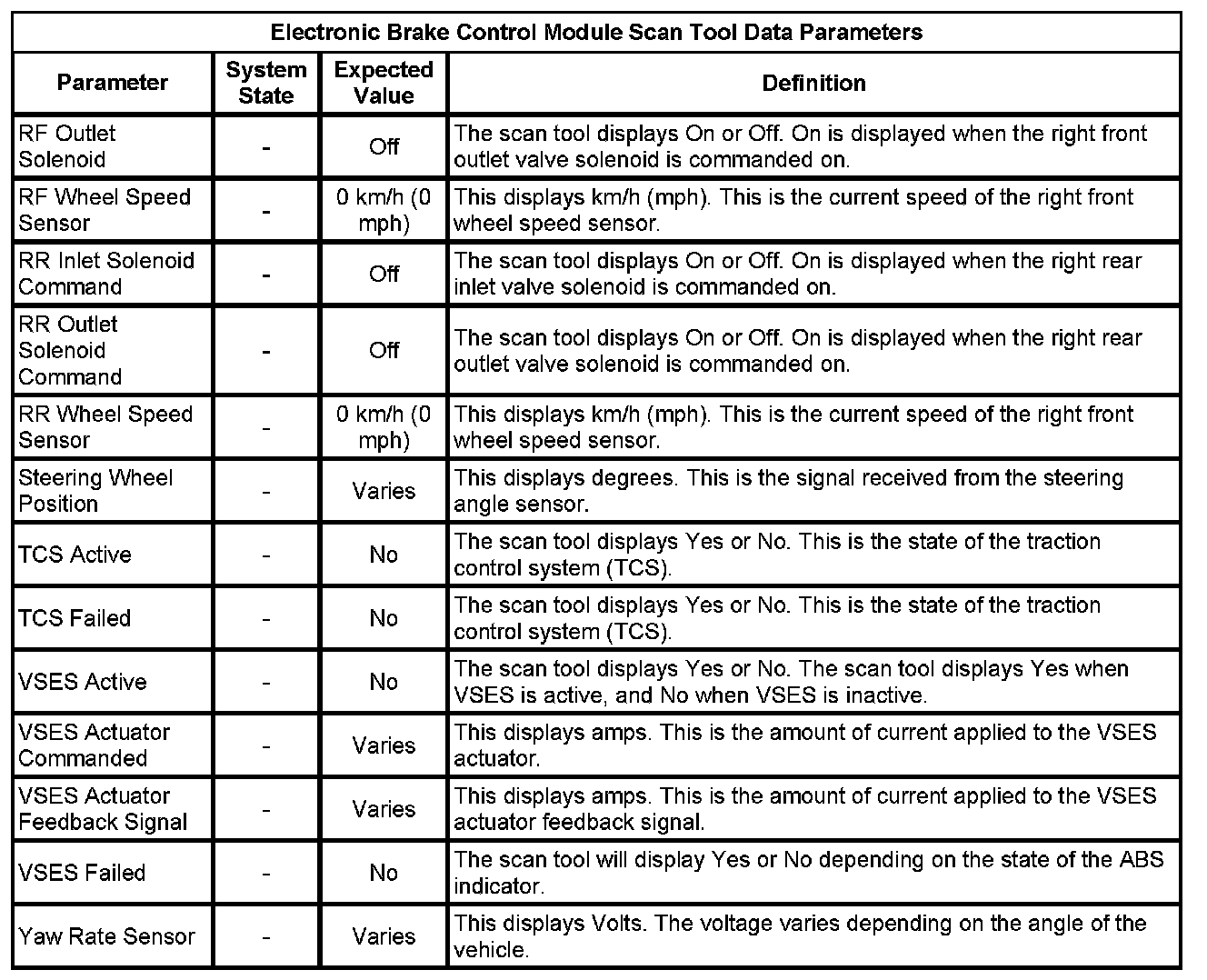 Electronic Brake Control Module Scan Tool Information