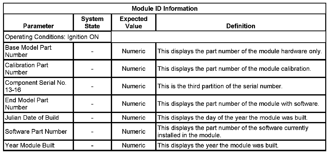 Headlamp Control Module Scan Tool Information (Module ID Information)