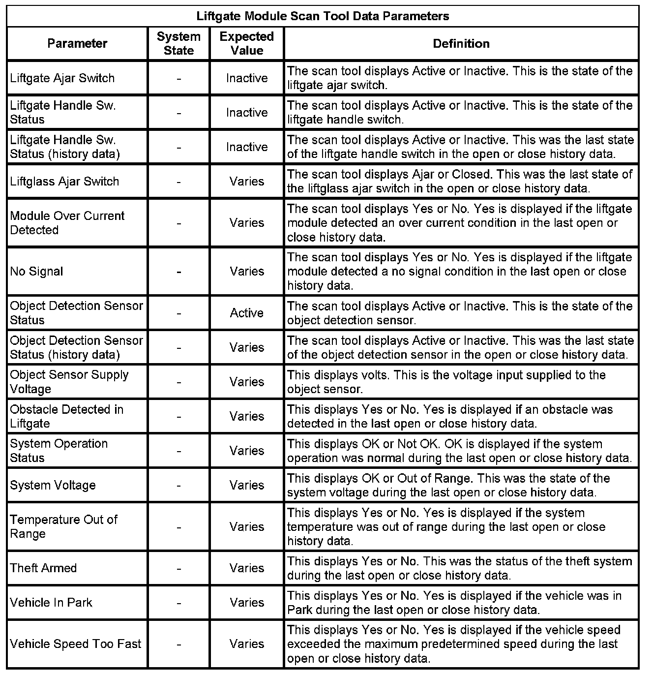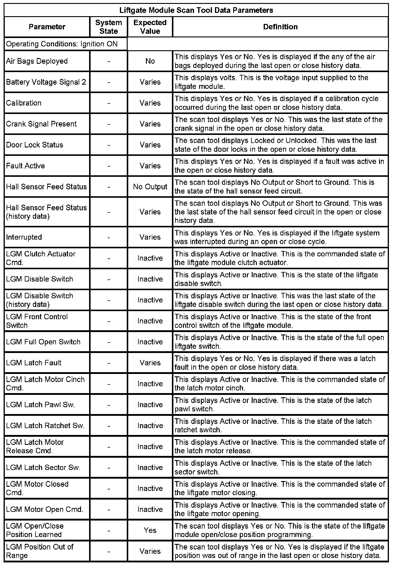 Liftgate Close Actuator Motor Control Module Scan Tool Information