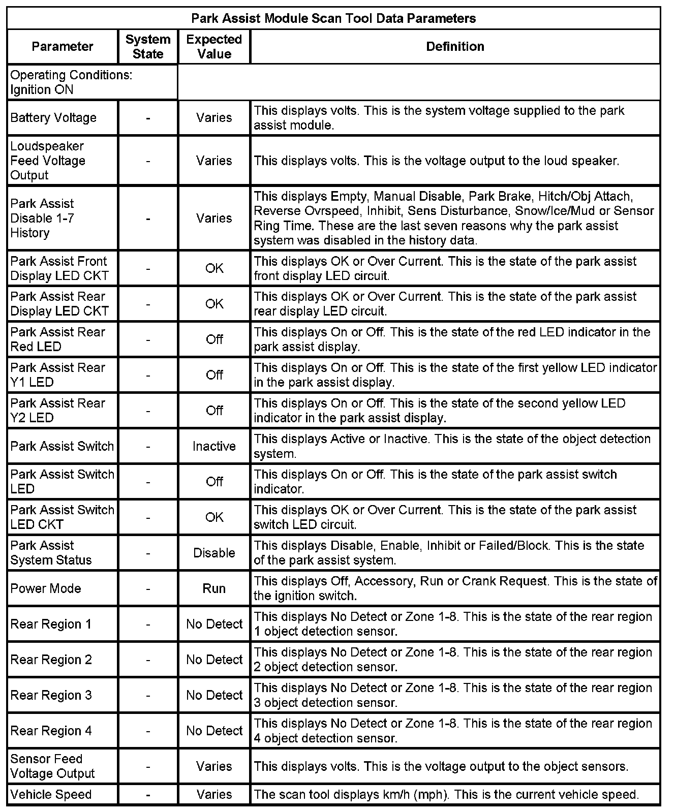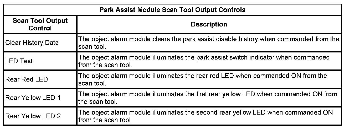 Rear Object Alarm Module Scan Tool Information