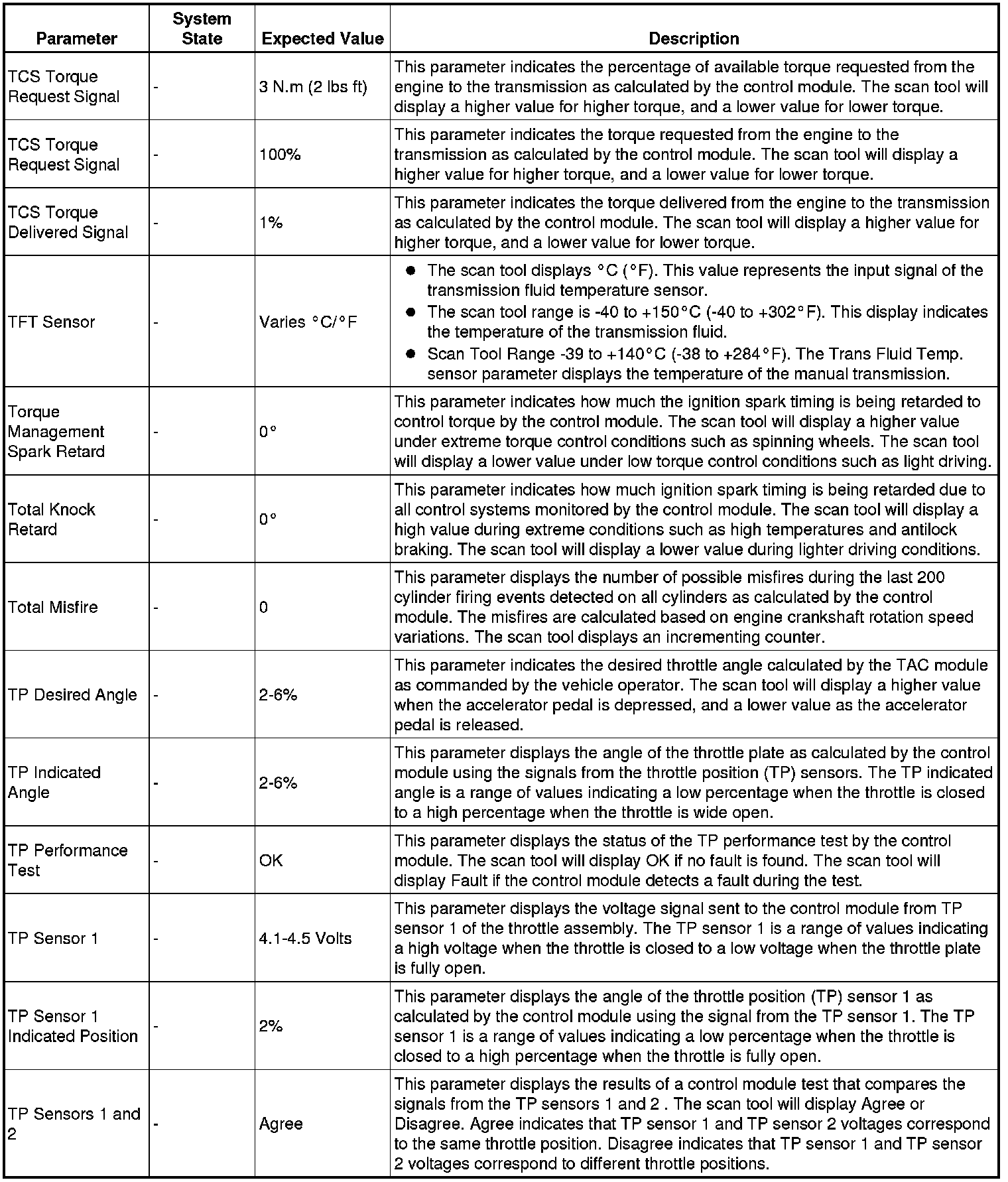 Only the parameters listed below are referenced in this service manual for use in diagnosis.