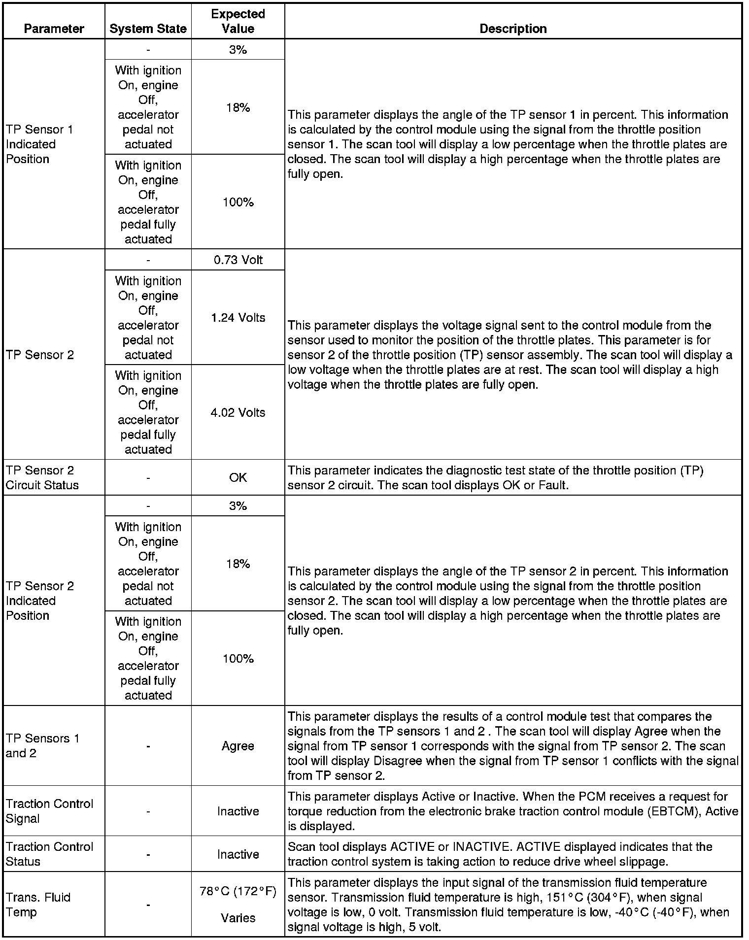 Only the parameters listed below are referenced in this service manual for use in diagnosis. If all values are within the typical range described below, Refer to for diagnosis.