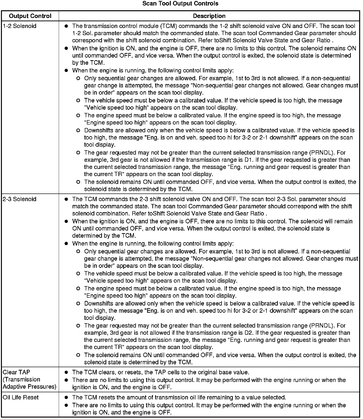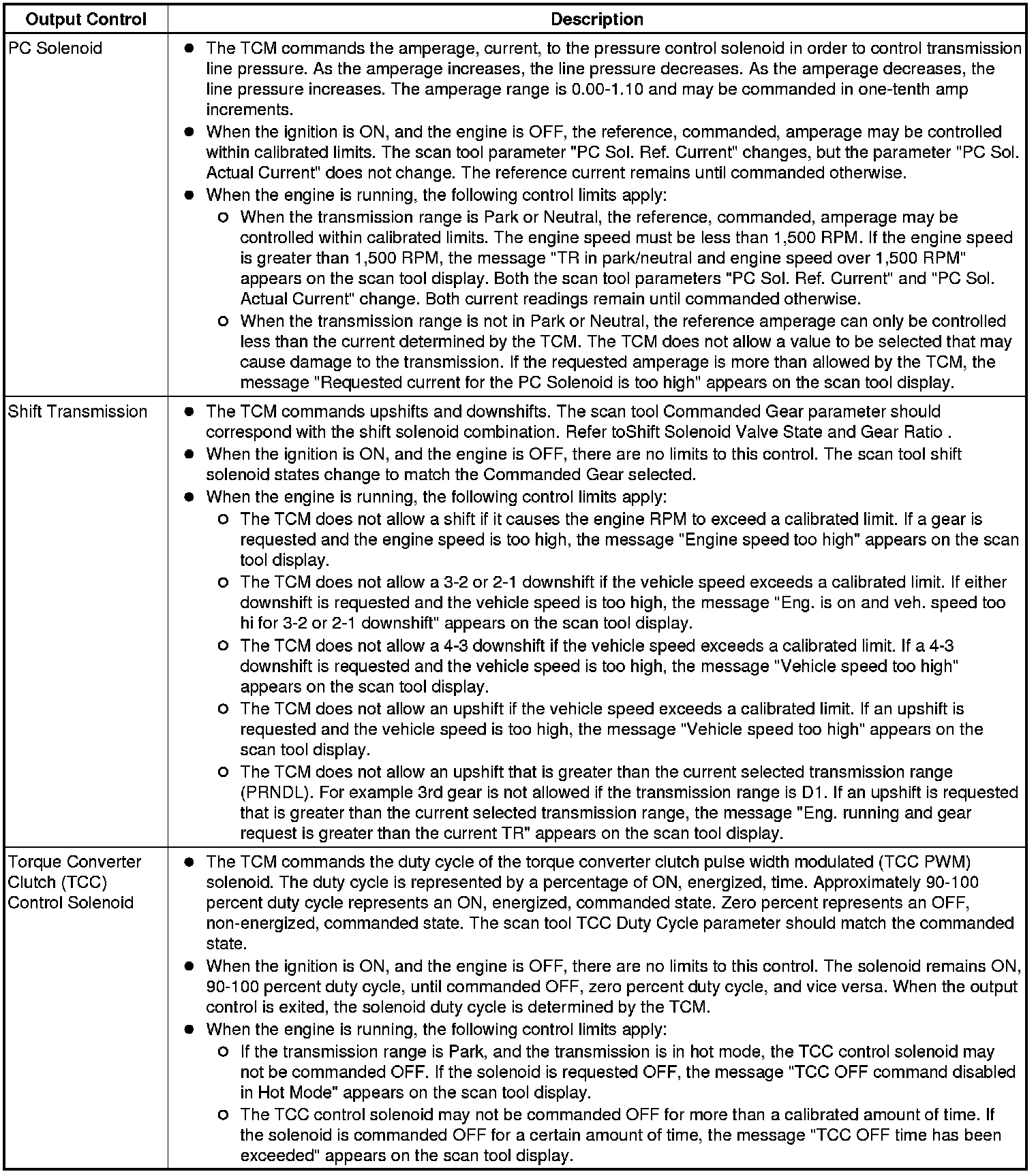 The Transmission Control Module Scan Tool Data List contains all transmission related parameters that are available on the scan tool. The list is arranged in alphabetical order. A given parameter may appear in any one of the data lists, and in some cases may appear more than once, or in more than one data list in order to group certain related parameters together.