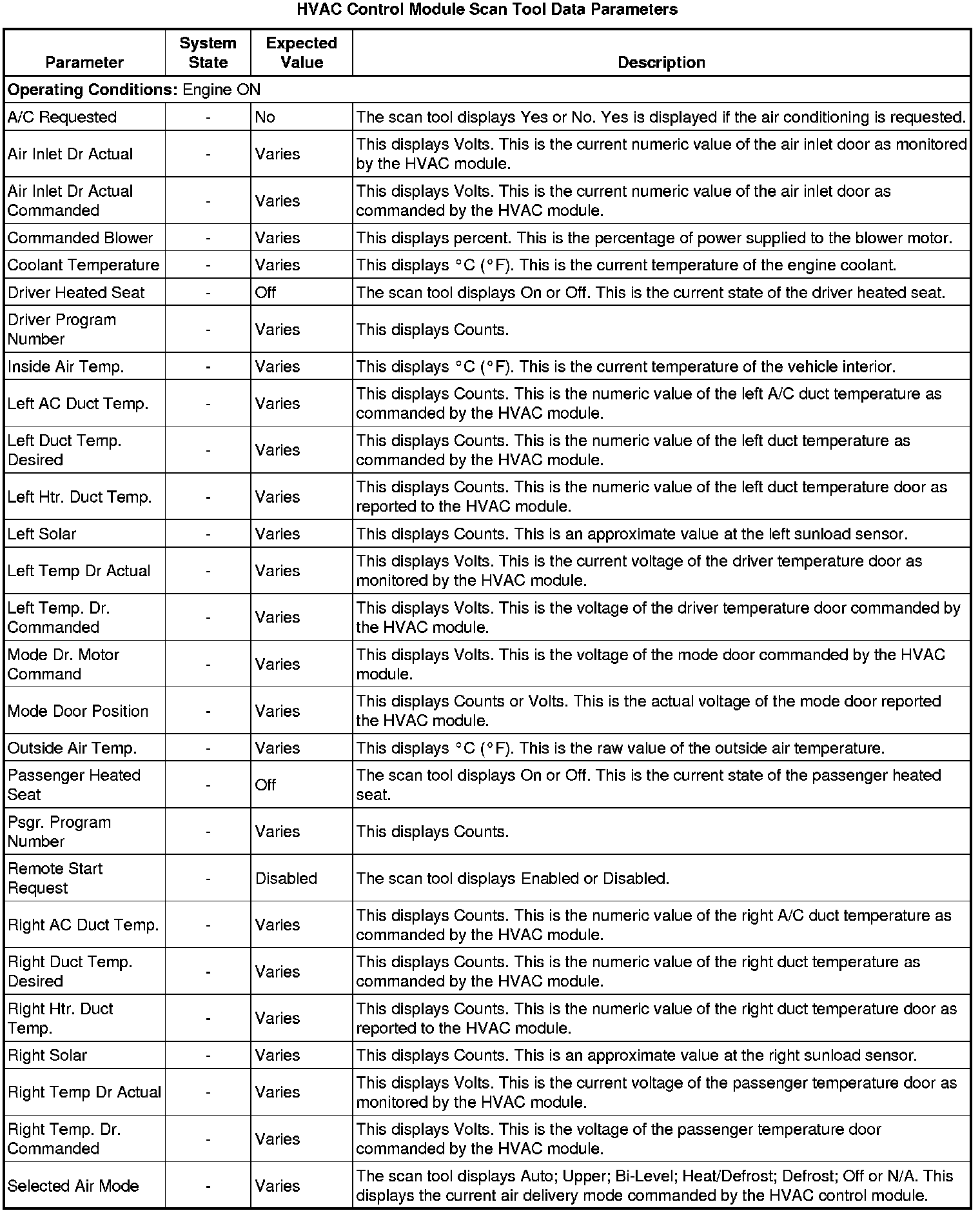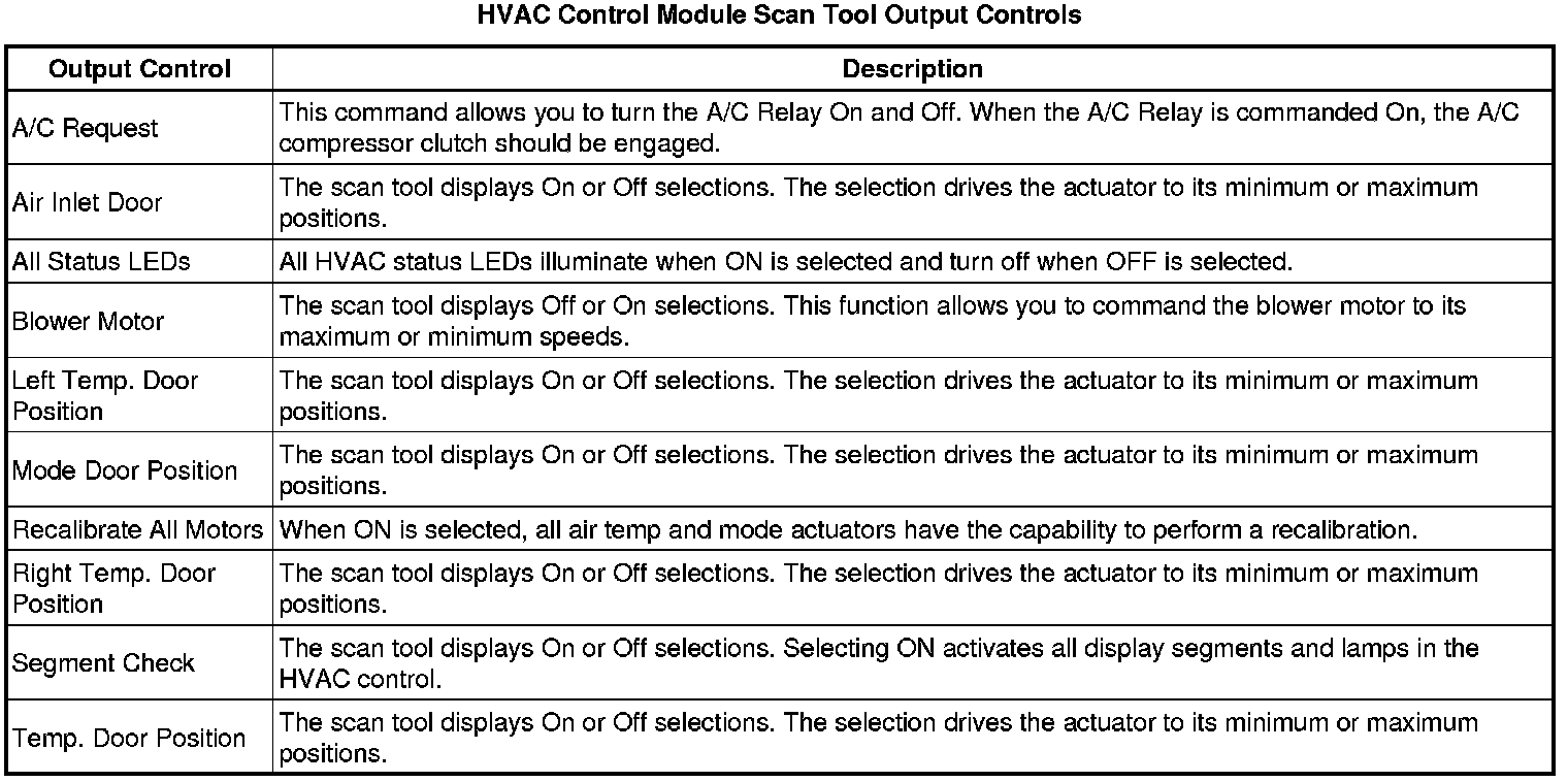 Heating, Ventilation and Air Conditioning Control Module Scan Tool Information