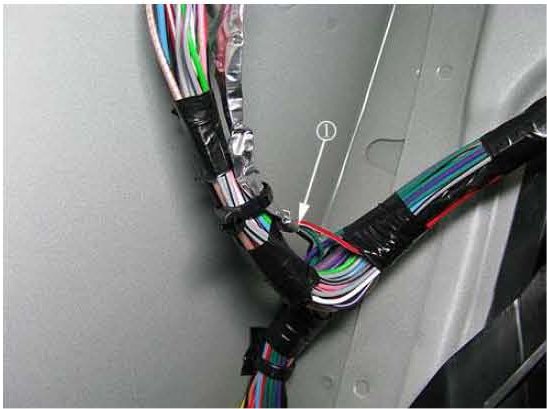 13. Separate the RCDLR circuit wires: 1840 (Red/White), 5060 (Dark Green) and 650 (Black) from the left rear body harness, starting at the connector side of the harness until you get to the Y-section (1) of the rear body harness.