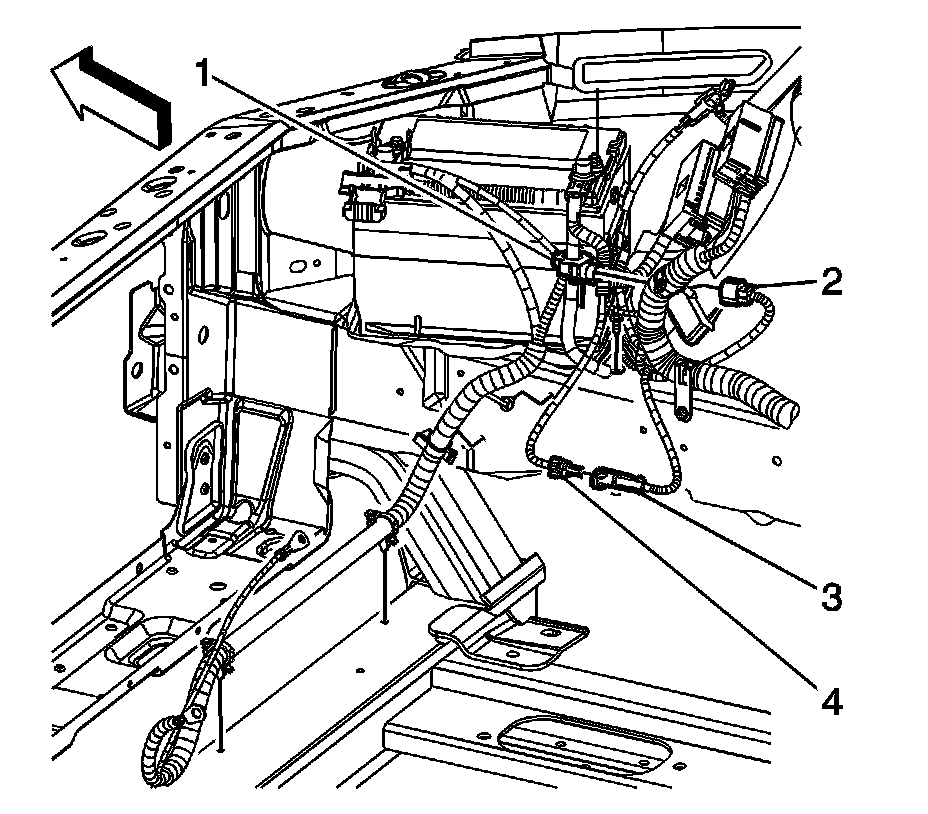 1. Disconnect the instrument panel (I/P) harness electrical connector (2) from the battery current sensor (1).
