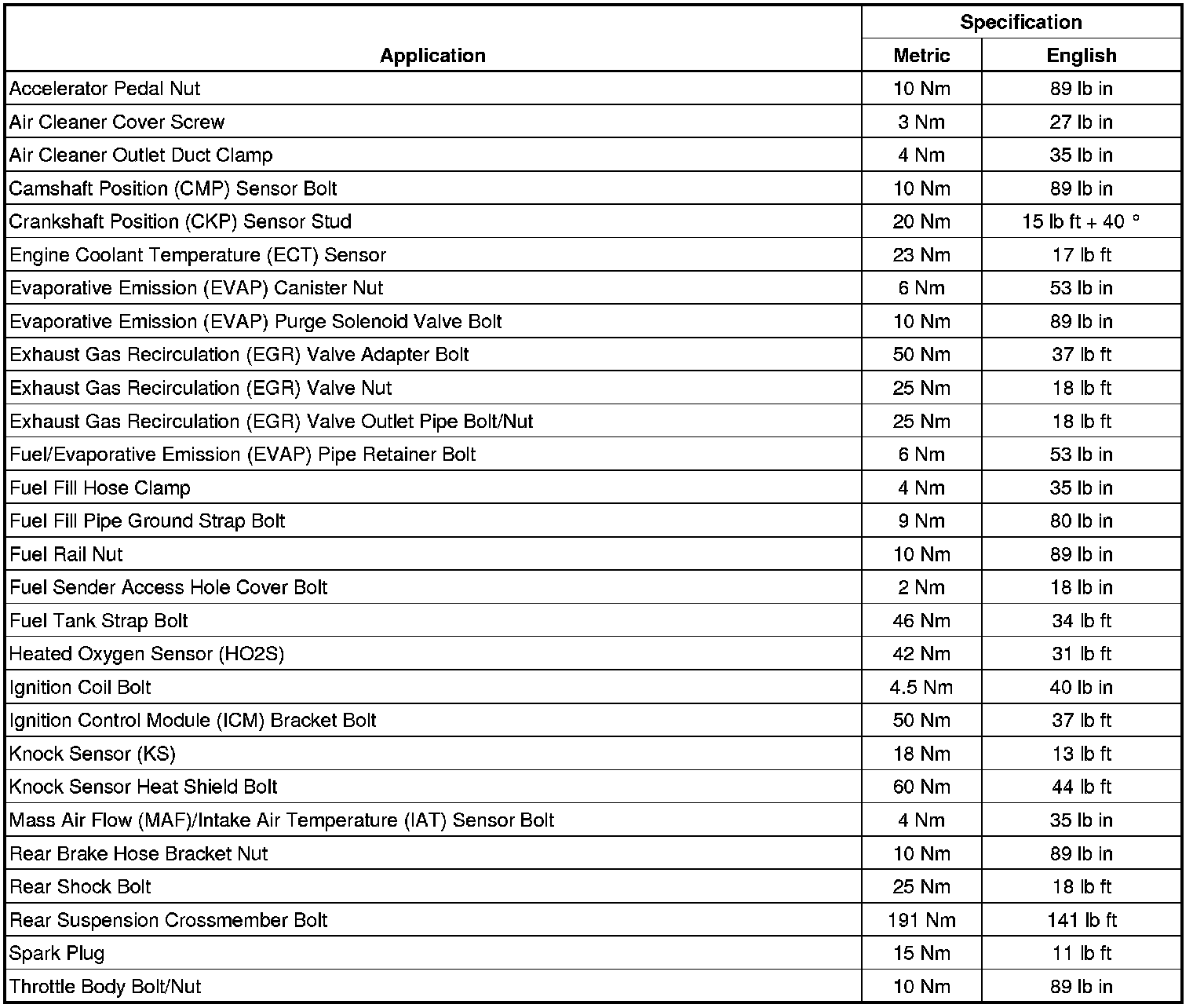 Fastener Tightening Specifications